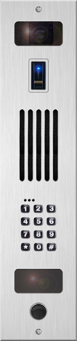 SLIM LINE ENTRY SYSTEM WITH A SELECTION OF KEYPAD TYPES, CAMERA, BIOMETRIC AND PROX READER OPTION